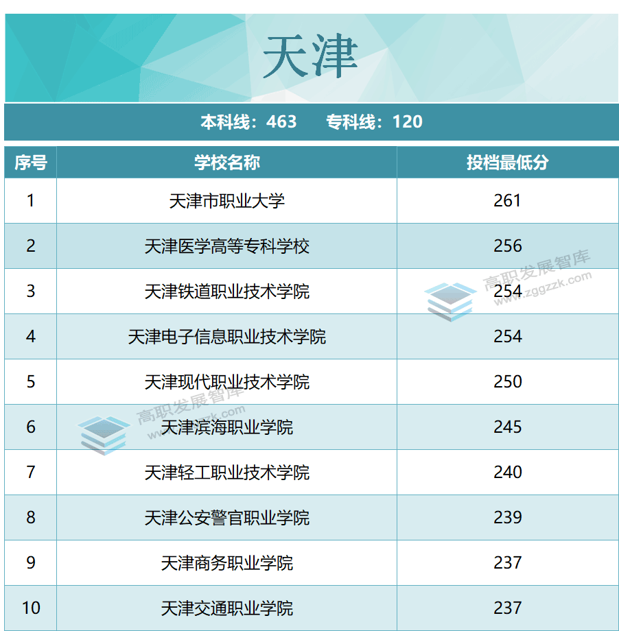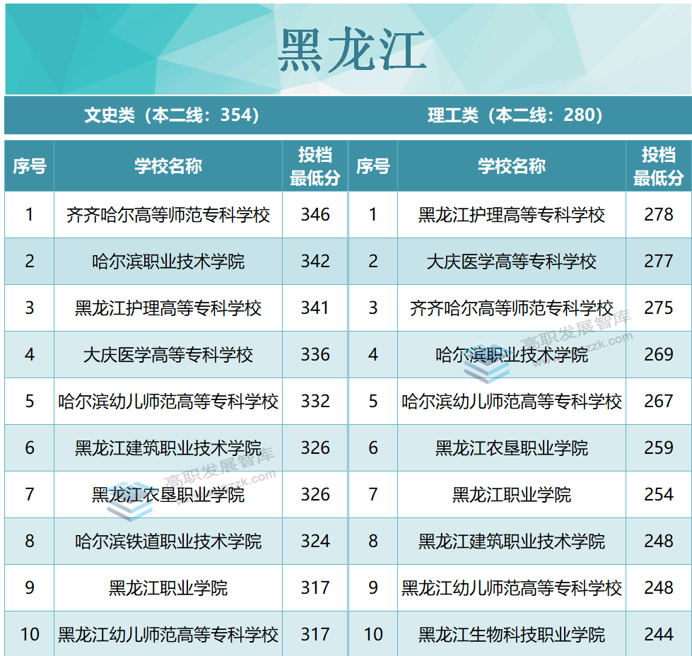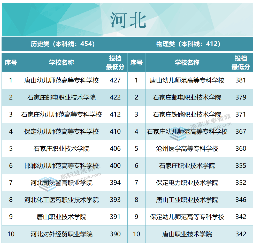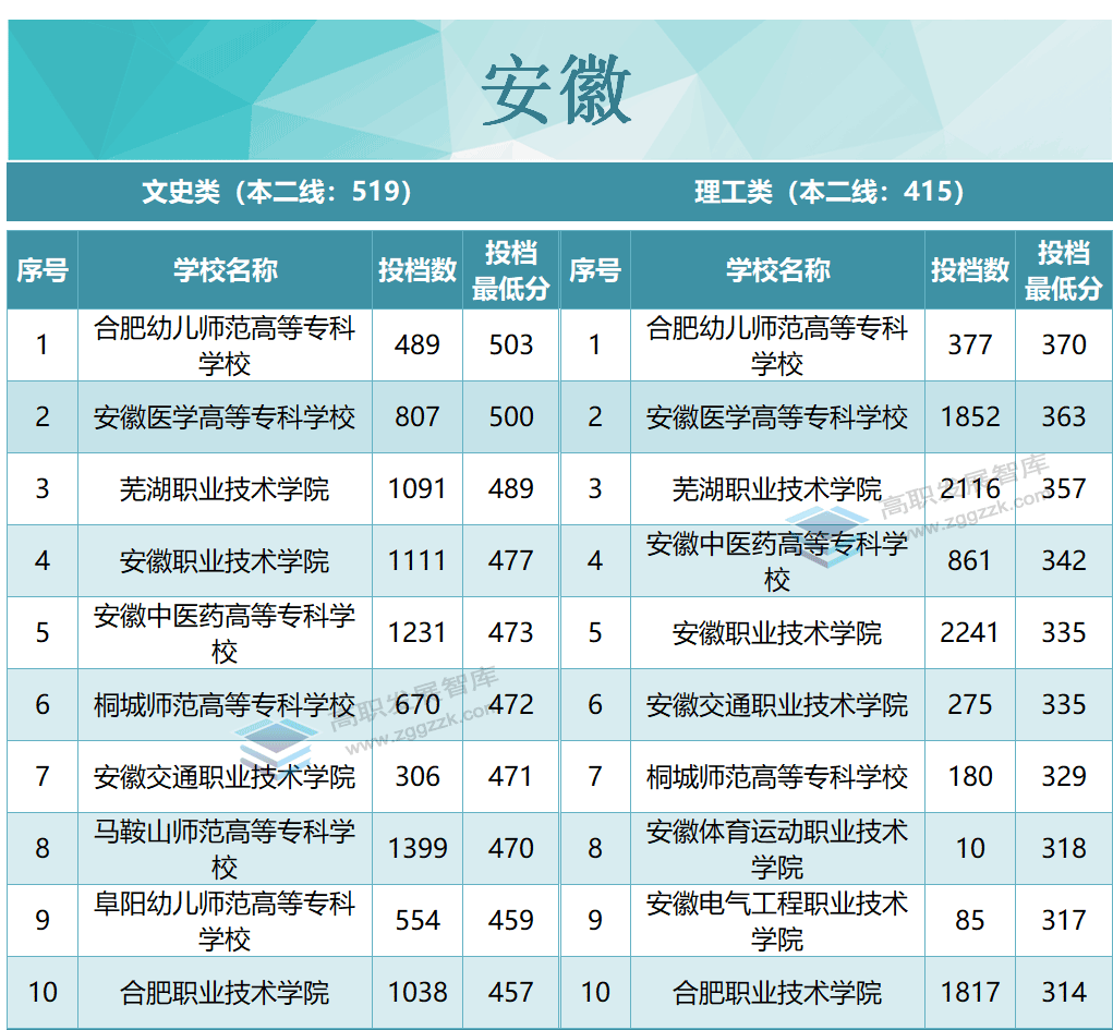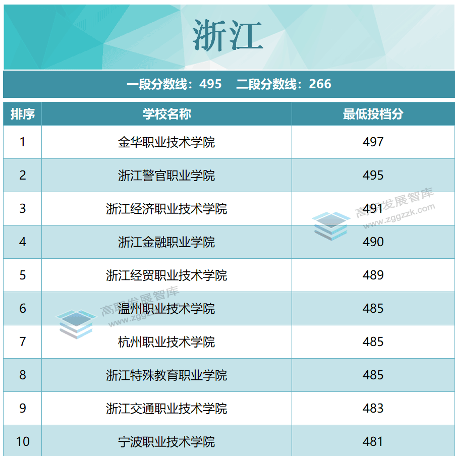 以下为2021年,24省省内专科投档分数线前十名高职院校名单:
