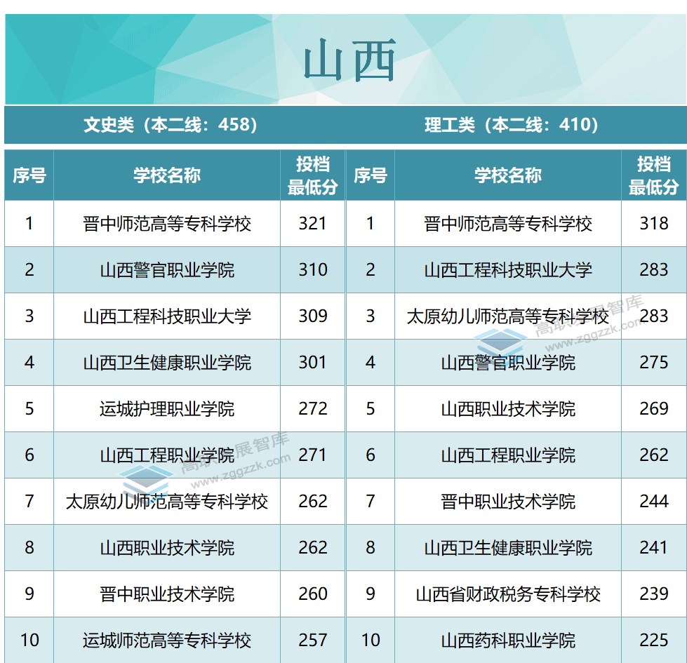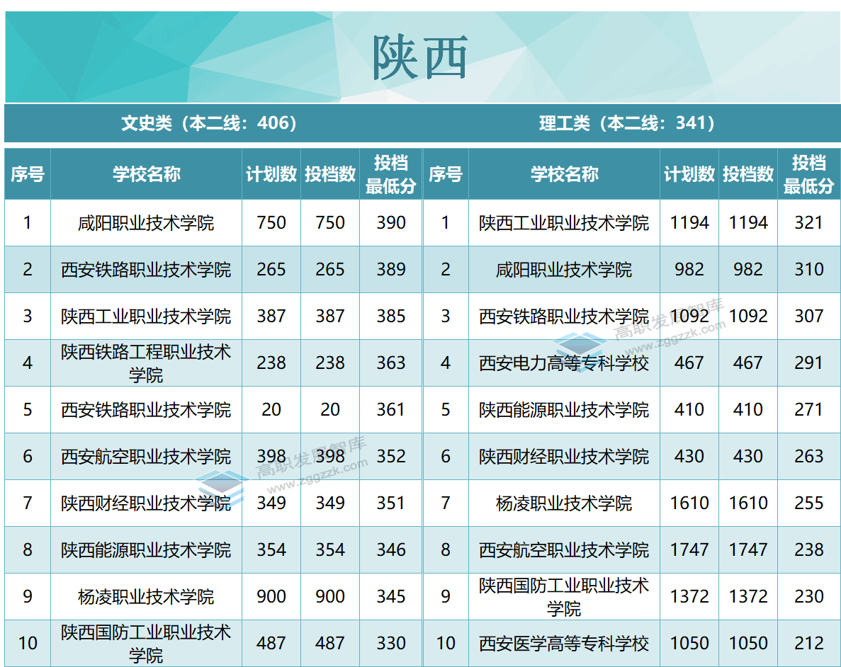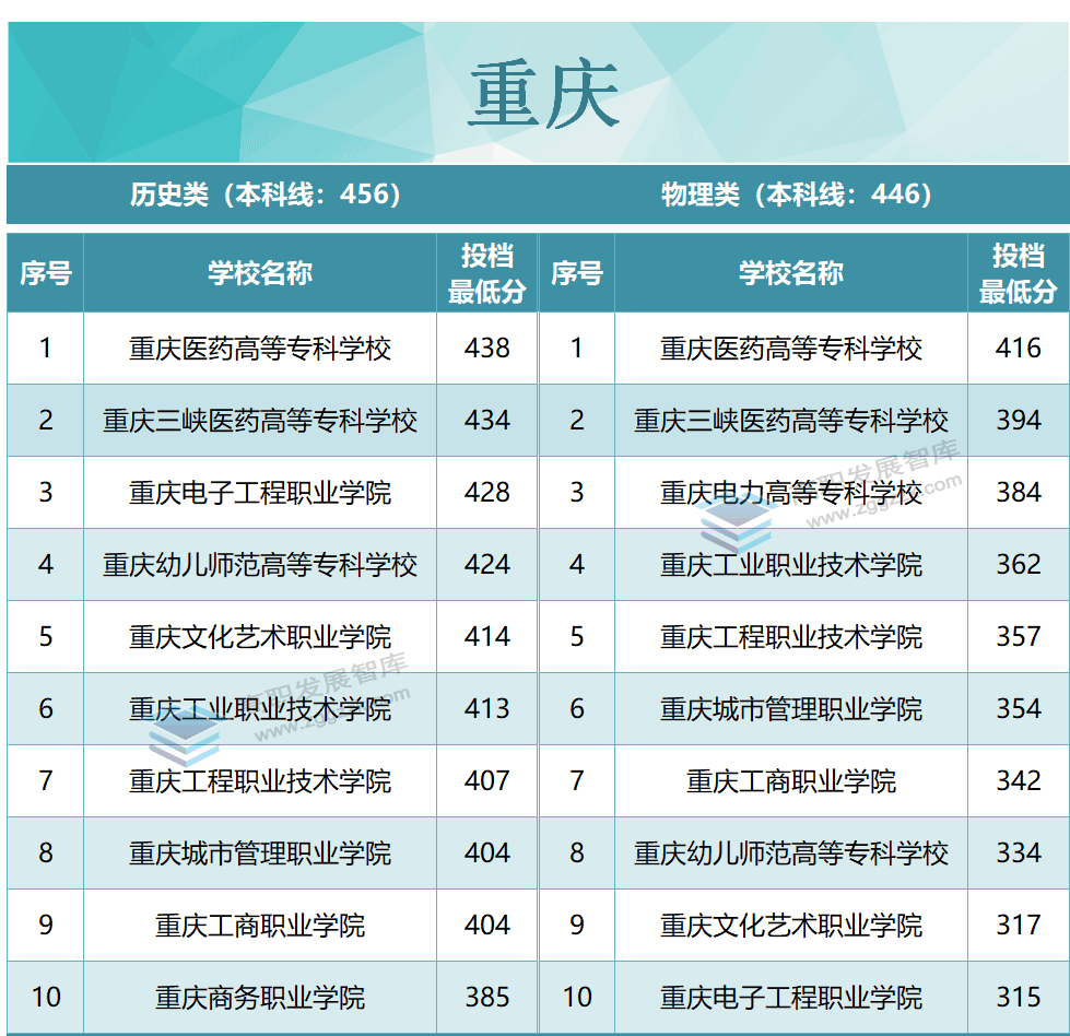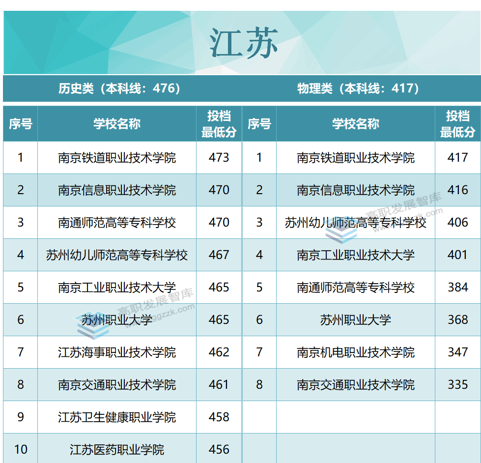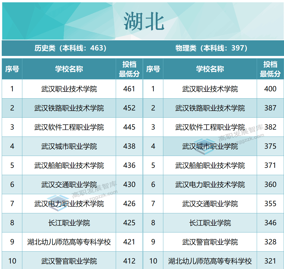 以下为2021年,24省省内专科投档分数线前十名高职院校名单: