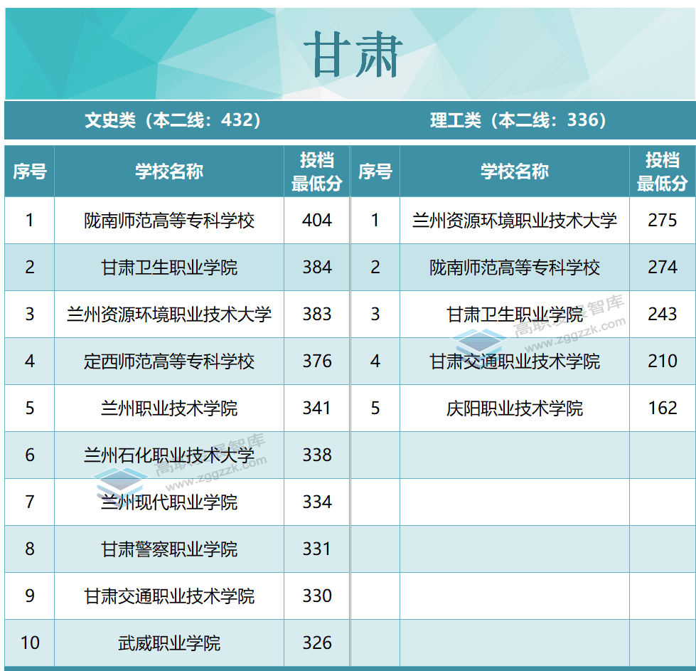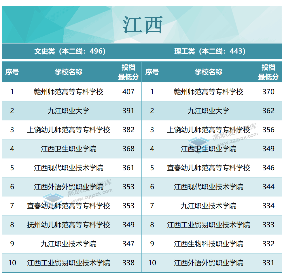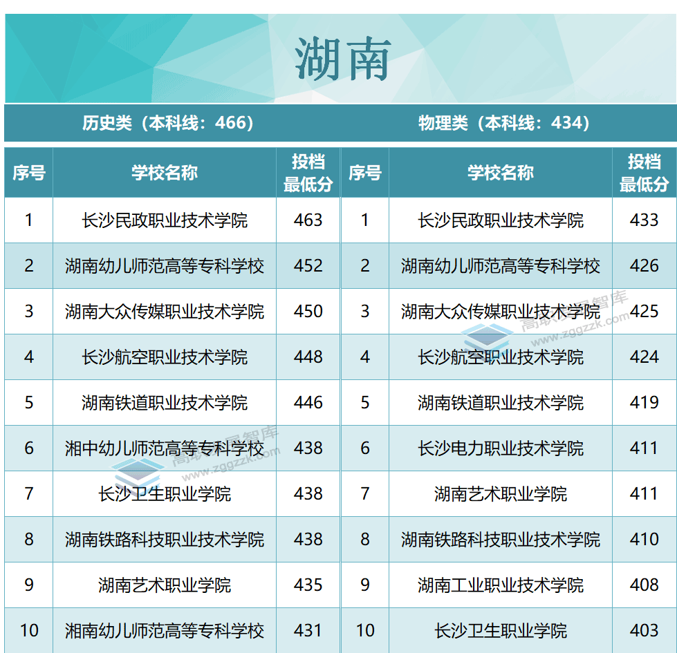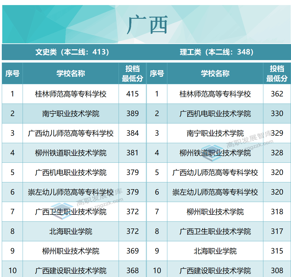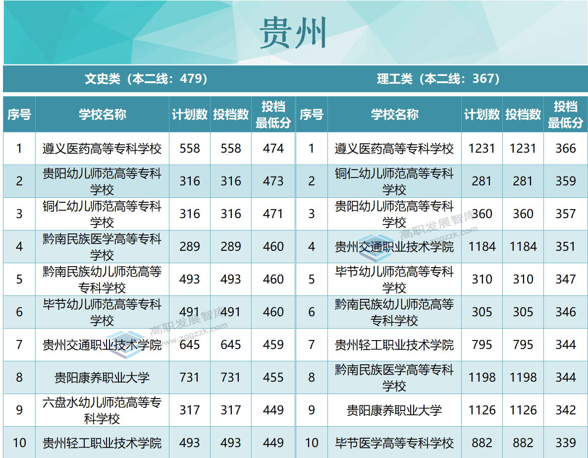 以下为2021年,24省省内专科投档分数线前十名高职院校名单: