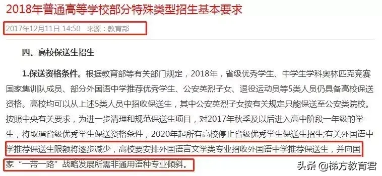 从2016年开始,不断有消息释放出来,将逐步外语类学校的保送人数。未来几年甚至或将完全取消外语类保送生。