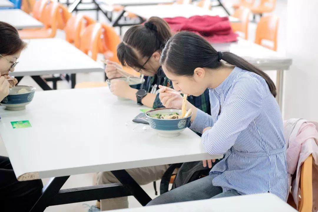 两校区食堂每日共售出约1100碗早餐面,广大师生对其好评如潮,其中最受欢迎的是打卤面和葱油拌面。