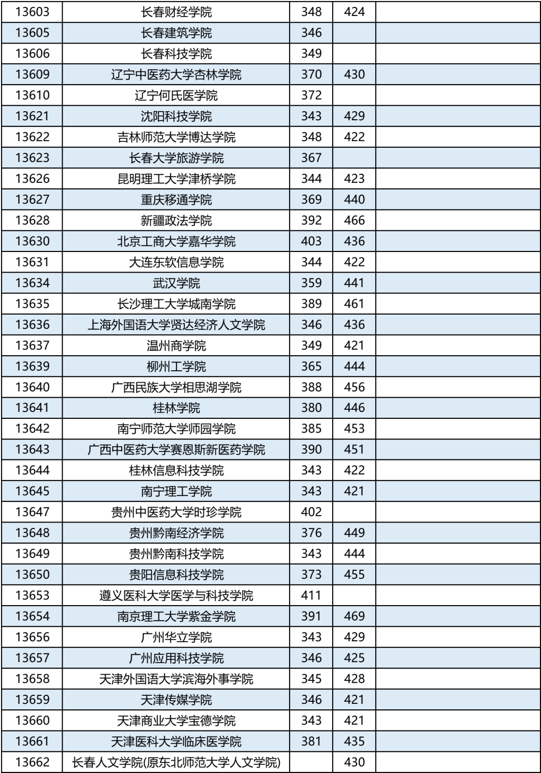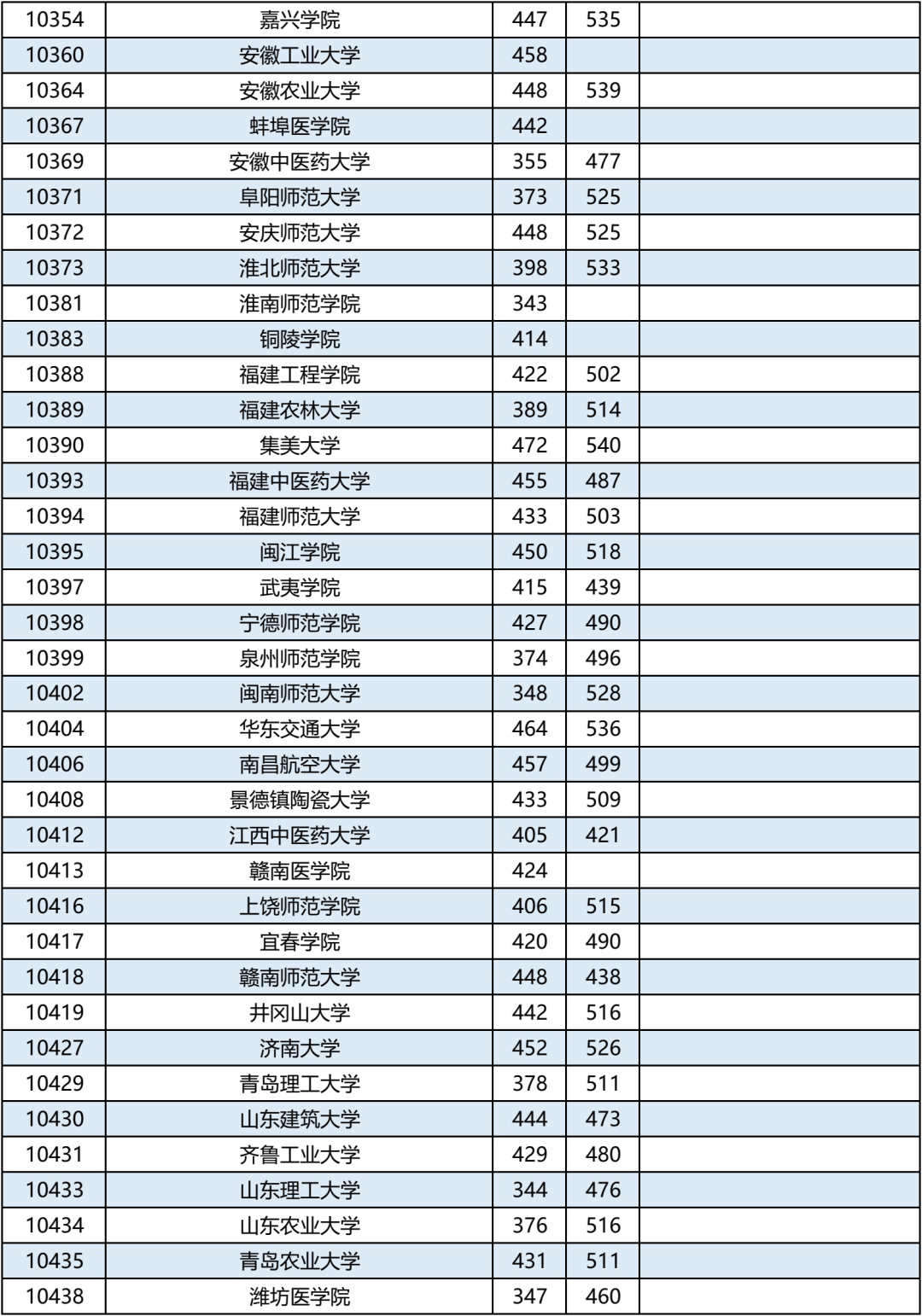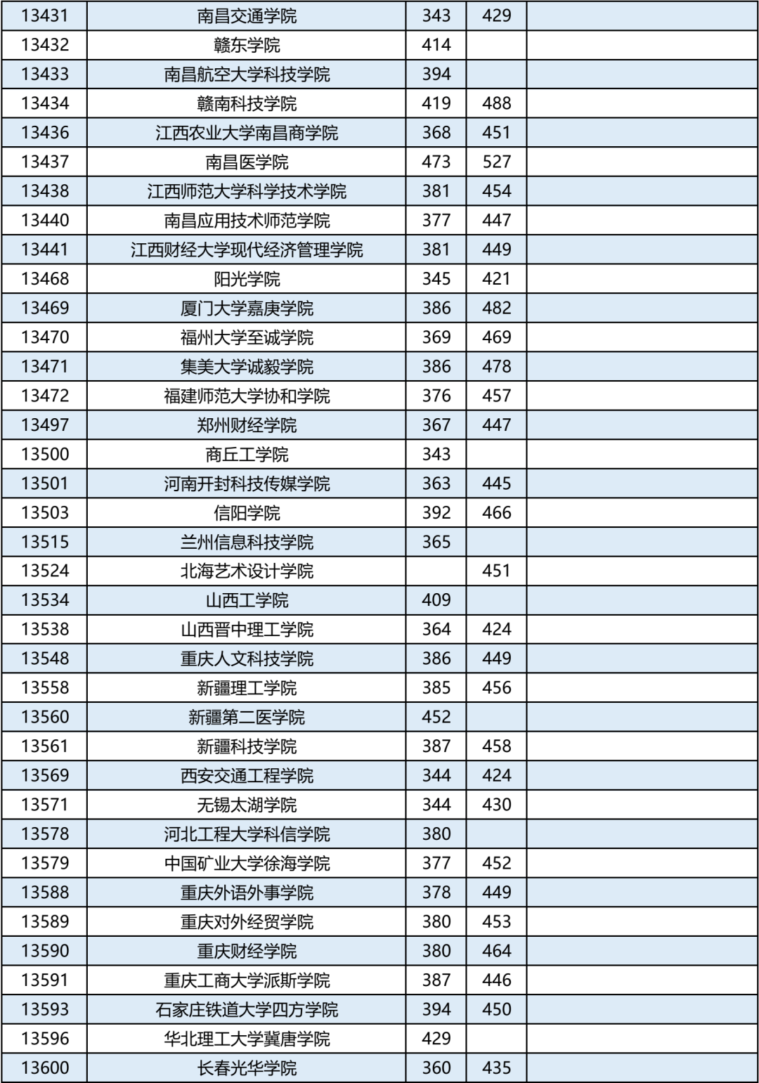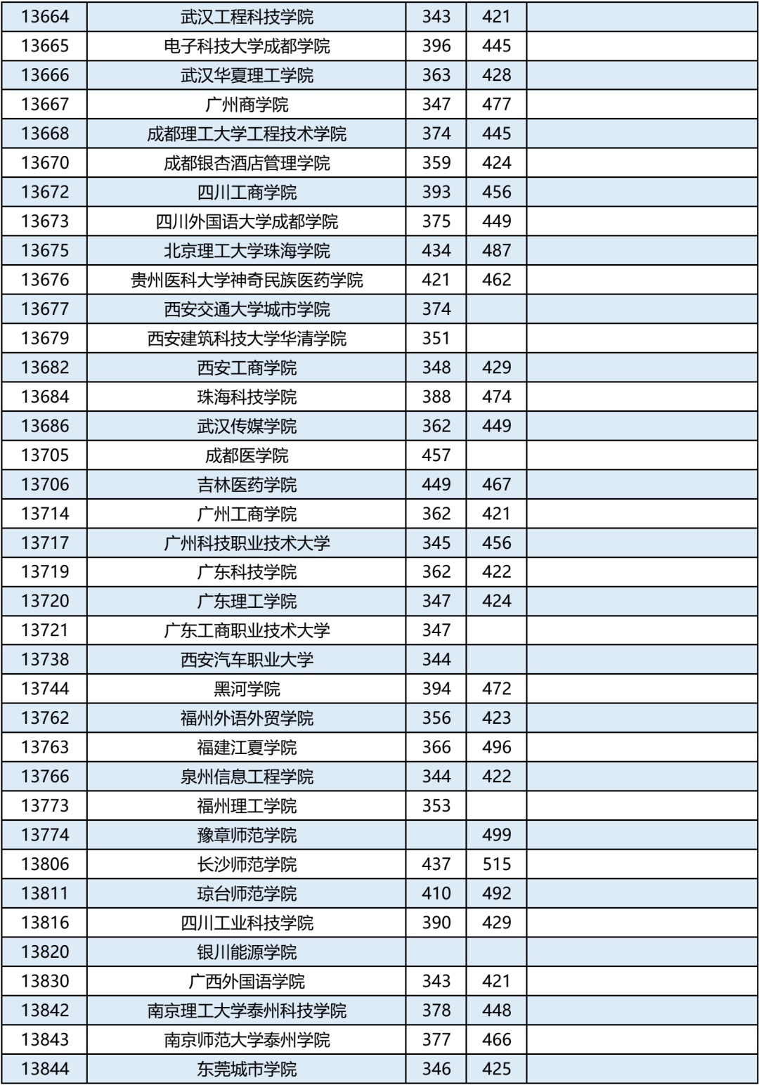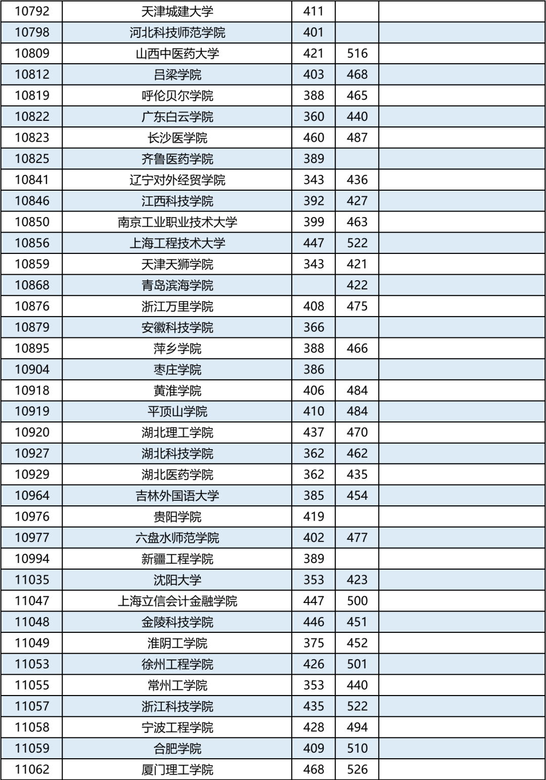 2.表中空白处表示无相应科类招生计划或无出档考生。