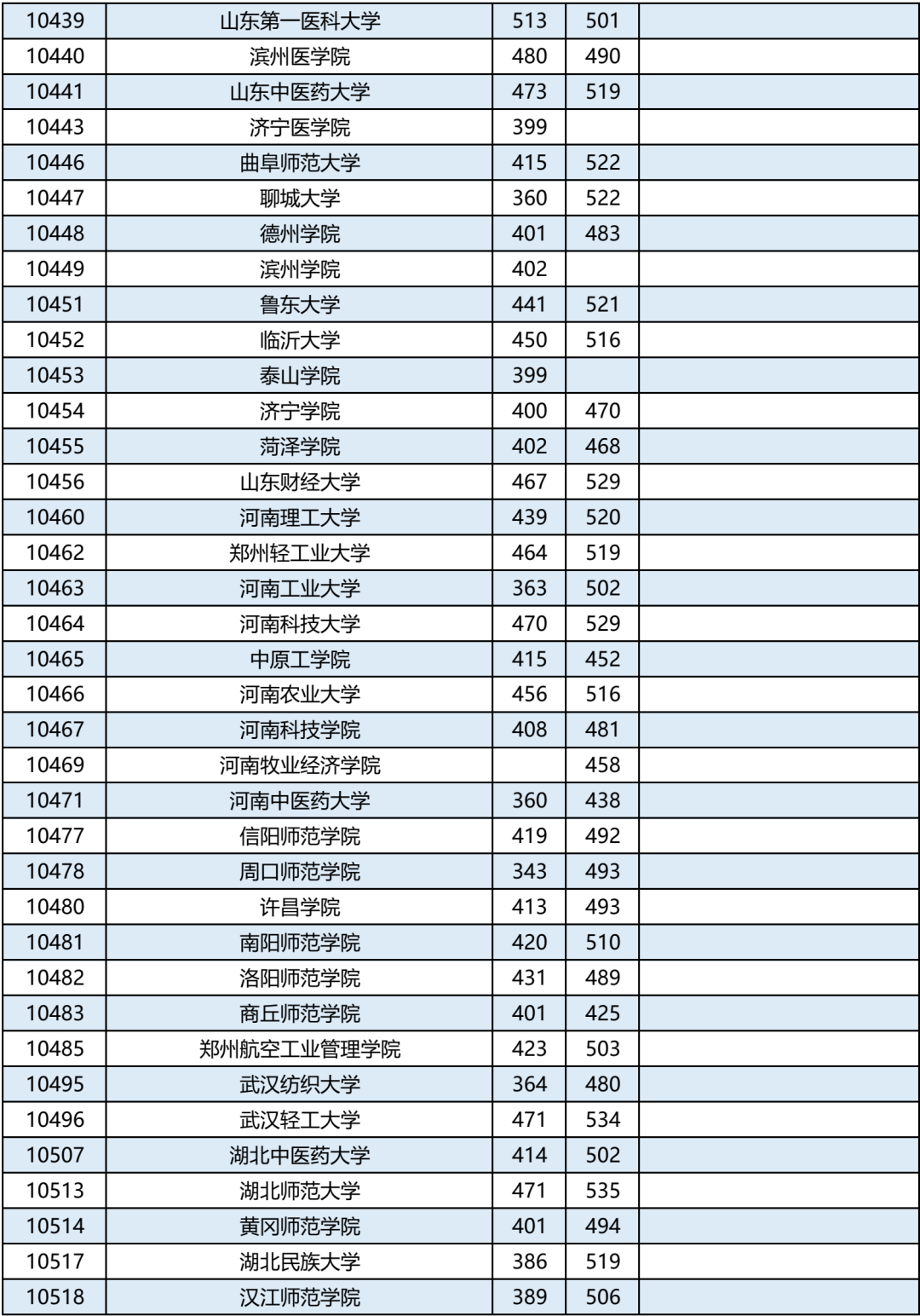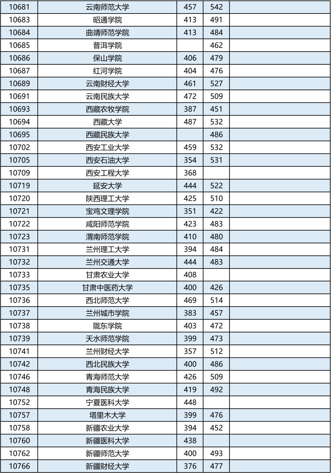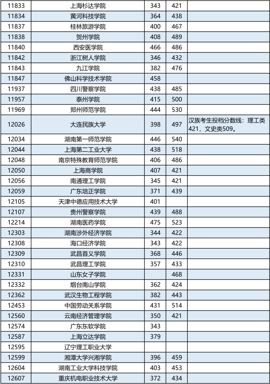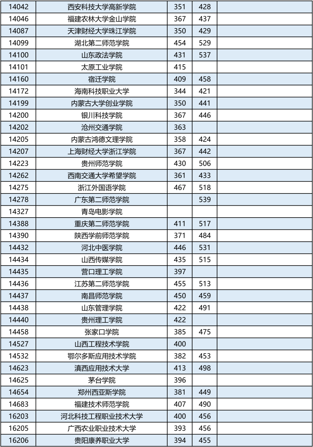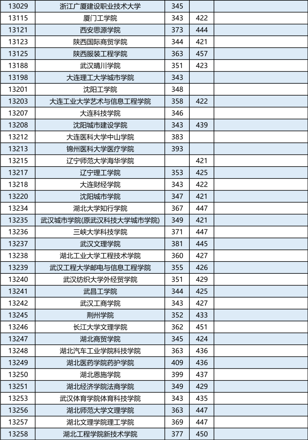 2.表中空白处表示无相应科类招生计划或无出档考生。