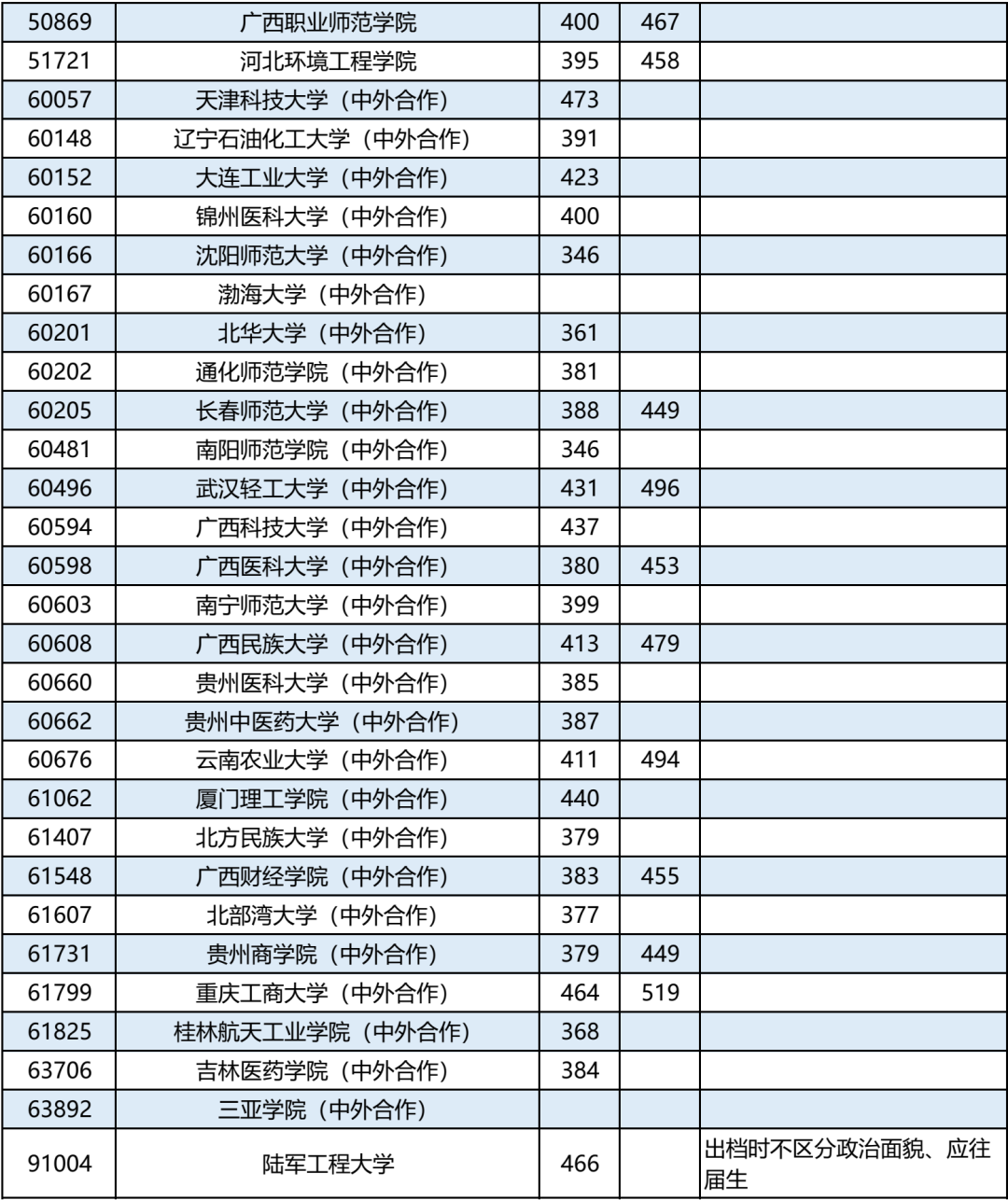 1.右江民族医学院、广西民族师范学院、大连民族大学对少数民族考生投档比例有要求,按学校要求进行投档。