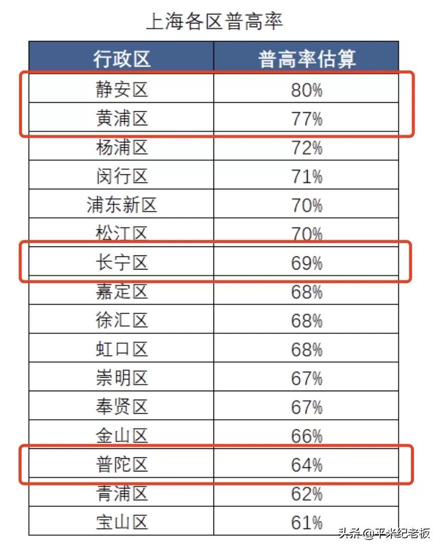 在普高比例中,长宁区位列第7,普陀则是倒数第3。