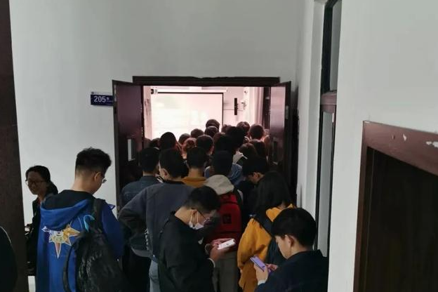 这堂课与专业学习无关,而学生们竟然会为了一堂课努力成到蹲在过道听讲,教室门口也挤满了,还有同学爬上窗台的,实在是叫人哭笑不得,你见过吗?