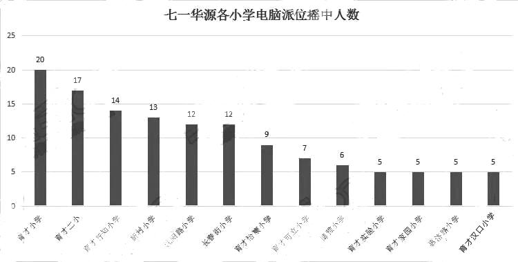 七一华源摇号报名人数1465人,派位计划招生人数173人,占据七一华源电脑派位摇中人数前六名的小学分别是育才小学、育才二小、育才行知小学、新村小学、沈阳路小学、长春街小学,这几所在区内都是极为热门的公办小学。