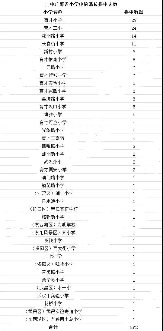 从江岸区来看,沈阳路小学和育才系的小学摇号中签率还是占据主要的位置,录取的人数相比其他学校来说多一些。
