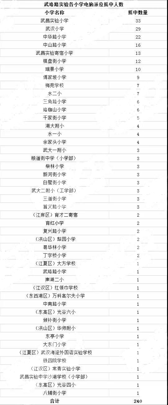 此外,摇中人数两位数以上的学校还有华苑小学、北湖小学、红领巾国际、常青树实验学校、华中里小学、辅仁小学。