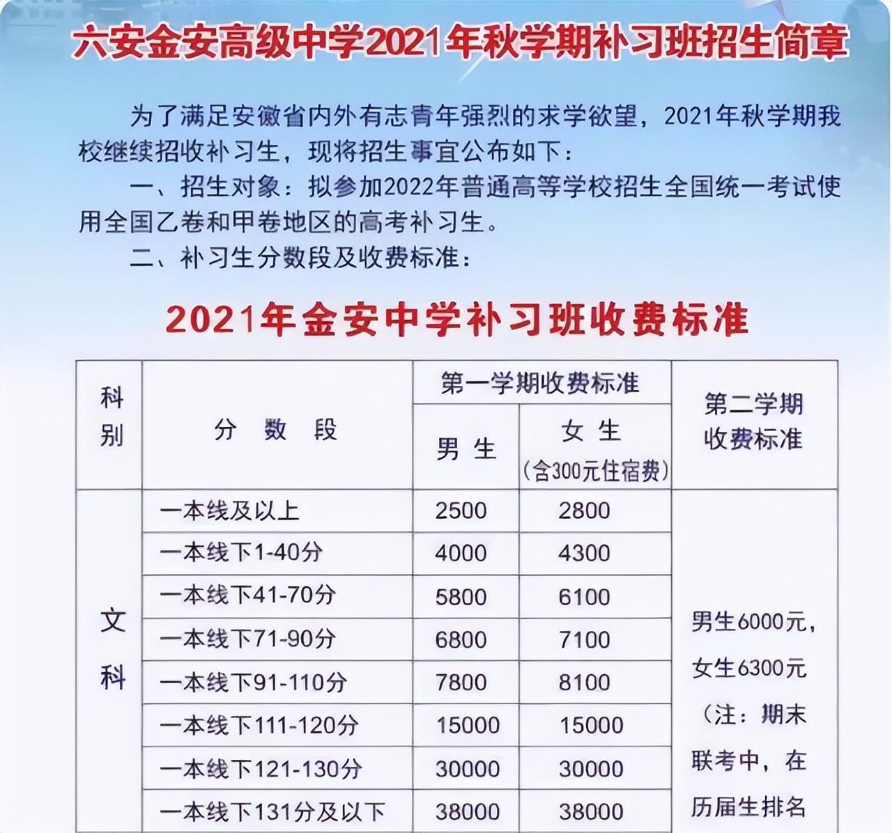 每个学生的复读费根据成绩来定,学校招生明码标价,一年的“补习班费用”最低8500元,最高4.4万元。