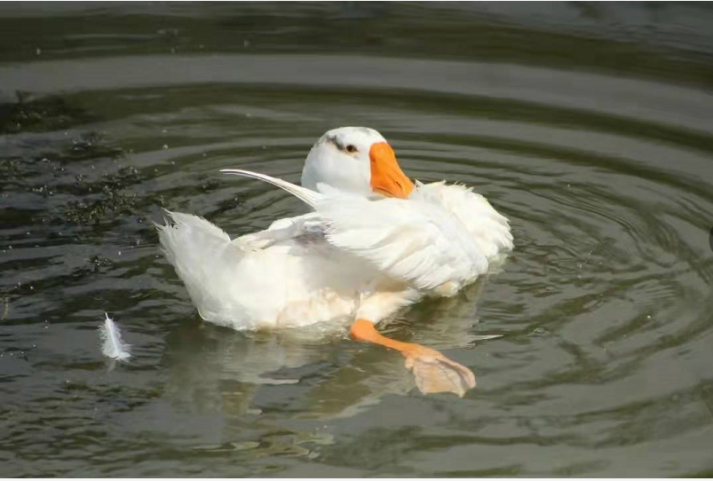 水中的大白鹅嬉闹着,平静的湖面泛起丝丝涟漪,为寂静的画面添上了几分生动。站在岸边,静静地看着它们,感受着它们的悠闲自在,这一刻,时光仿佛都变得缓慢了。