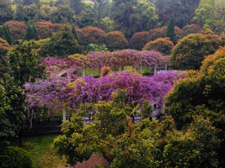 花团紧簇,长廊环绕。风景美不胜收,亦是学子放松身心的好去处。