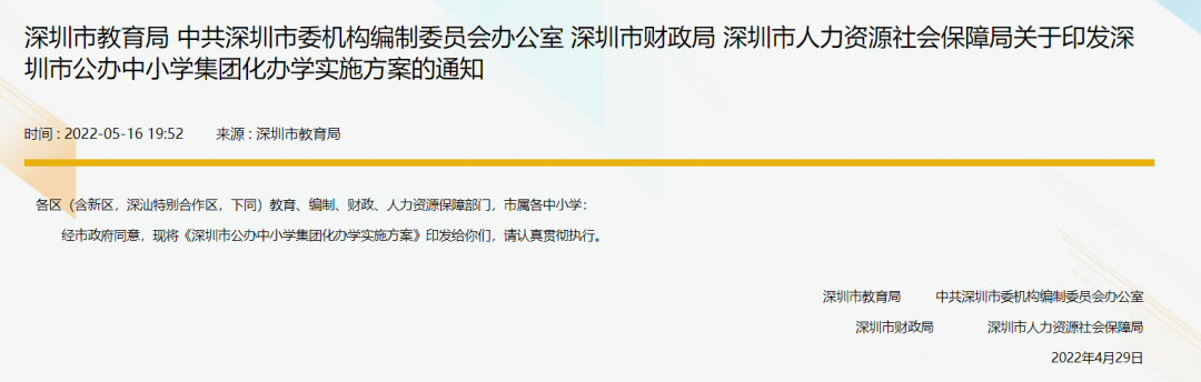 《深圳市公办中小学集团化办学实施方案》正式出炉!