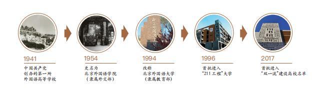 北京外国语大学是教育部直属、首批"211 工程"高校、入选"985 优势学科创新平台"高校、首批"双一流"建设高校。北京外国语大学是中国共产党创办的第一所外国语高等学校,前身是 1941 年成立于延安的中国抗日军政大学三分校俄文大队,后发展为延安外国语学校,建校始隶属于党中央领导。新中国成立后,学校归外交部领导,1954 年更名为北京外国语学院,1959 年与北京俄语学院合并组建新的北京外国语学院。1980 年后直属国家教育部领导,1994 年正式更名为北京外国语大学,是目前我国高等院校中历史悠久、教授语种最多、办学层次齐全的外国语大学。
