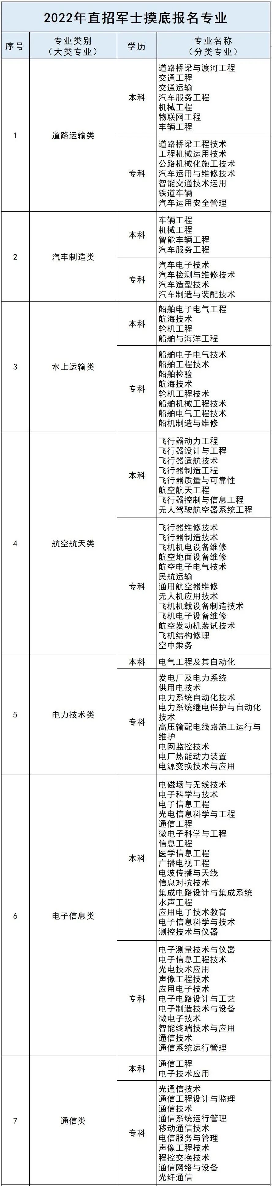 经初步统计,2022年直招军士涉及道路运输、汽车制造、电子信息、通信、计算机、机电设备、机械、医药等400余个军民通用专业。