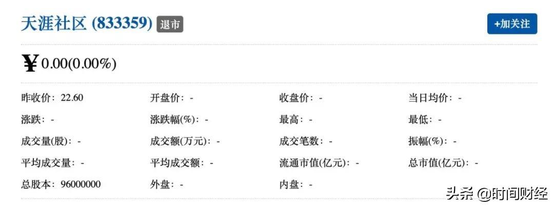 实际上挂牌以来,天涯社区二级市场交易并不活跃,且申报审批并未通过。2018年4月8日,董事会审议通过终止挂牌的议案。2019年4月17日,天涯社区正式在新三板摘牌。