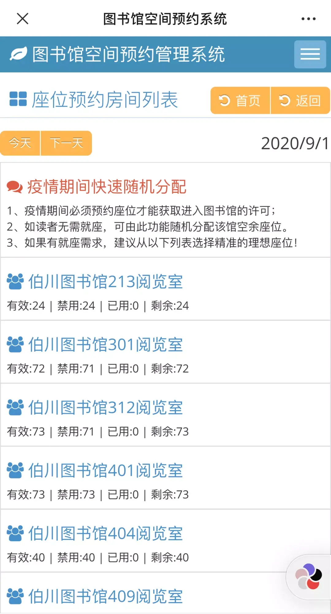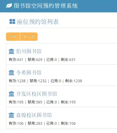 1.2 预约系统已经集成校园统一身份认证,无需登录直接在主页面中选择座位预约;