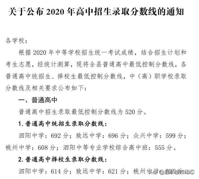 今年泗阳普通高中招生录取最低控制分数线为520分,低于这个分数将无法就读泗阳任何普通高中,花钱也不行!