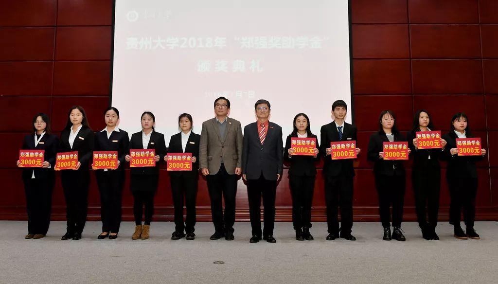 2019年1月7日,“郑强奖助学金”在贵大首次颁发,共有20名学生获得奖学金、10名学生获得助学金,颁发总金额达20万元。