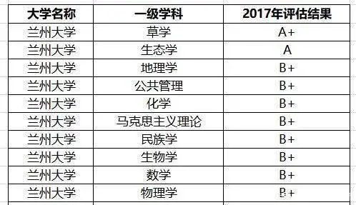 第四轮评估中学校有8个学科参评,其中B类学科获评2个(草学、民族学)。