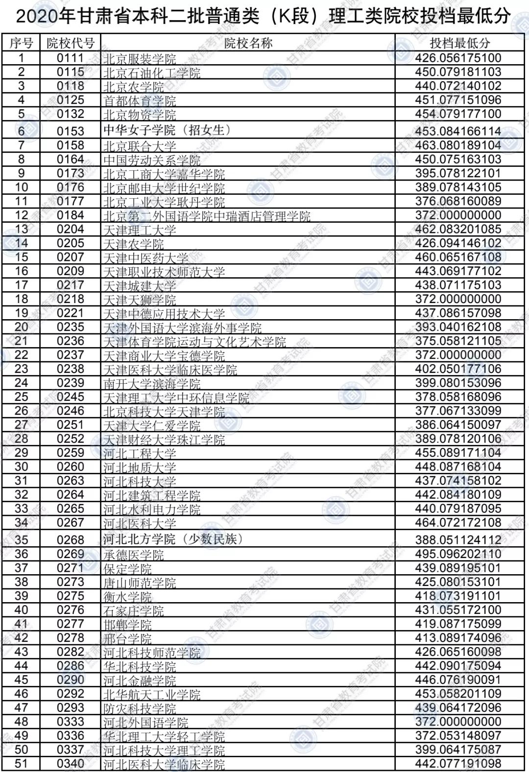 3.部分院校有多种招生类型,同一所院校会出现不同的投档最低分,具体请根据院校代号对照《2020年甘肃省普通高校招生专业目录》。
