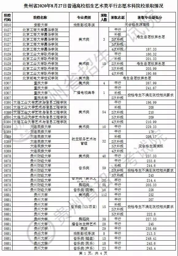 3、艺术类院校投档线(8.27)
