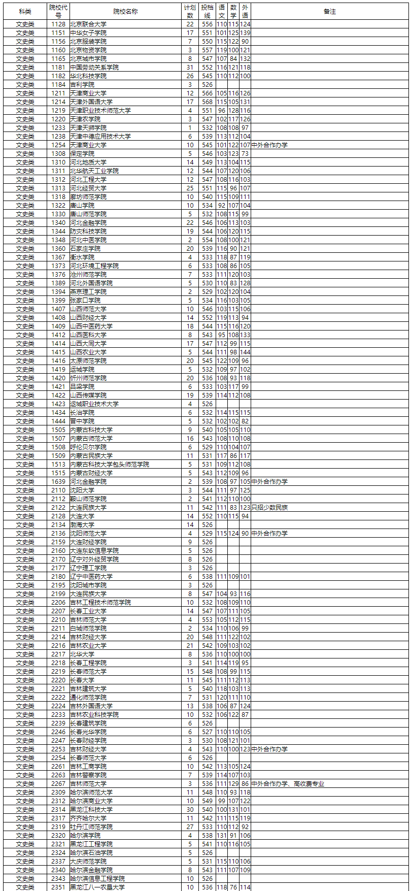 2、本科二批文史类院校投档线