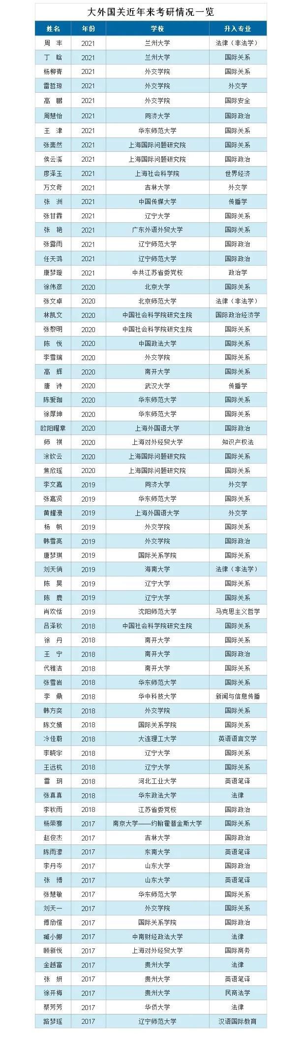 我院毕业生就业率高,社会评价好。毕业生初次就业率可达90%以上,年终就业率超过95%,年均升学率达38%,2020年升学率达到45%。学院多名毕业生考取北京大学、外交学院、国际关系学院、中国社会科学院、南开大学、武汉大学、华东师范大学、山东大学、南京大学、吉林大学等国内知名学府;另有数名毕业生进入英国伦敦大学学院、伦敦国王学院,德国海德堡大学,美国乔治城大学、密歇根大学,日本东北大学,韩国首尔大学等国外高等学府深造学习。毕业生的主要就业单位类型为国家机关、外事、外经外贸、外资、合资企业等。例如,中央电视台、中国国际广播电台国际在线部、盘古智库(北京)、毕马威华振会计事务所(特殊普通合伙)、京东、新东方、奥克斯空调、格兰仕集团、北京学而思、深圳环球易购等单位,我院毕业生自身素质获得相关单位普遍好评。