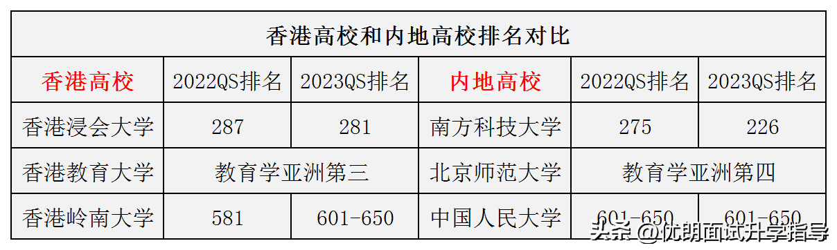 所以,你会发现,香港很多院校在QS和THE世界大学榜单上就远远比内地高校的排名要高!