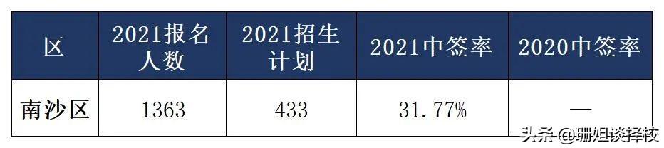 南沙区2021年对外摇号的4所学校总计划数是433,共1363位小学毕业生报名,中签率31.77%。