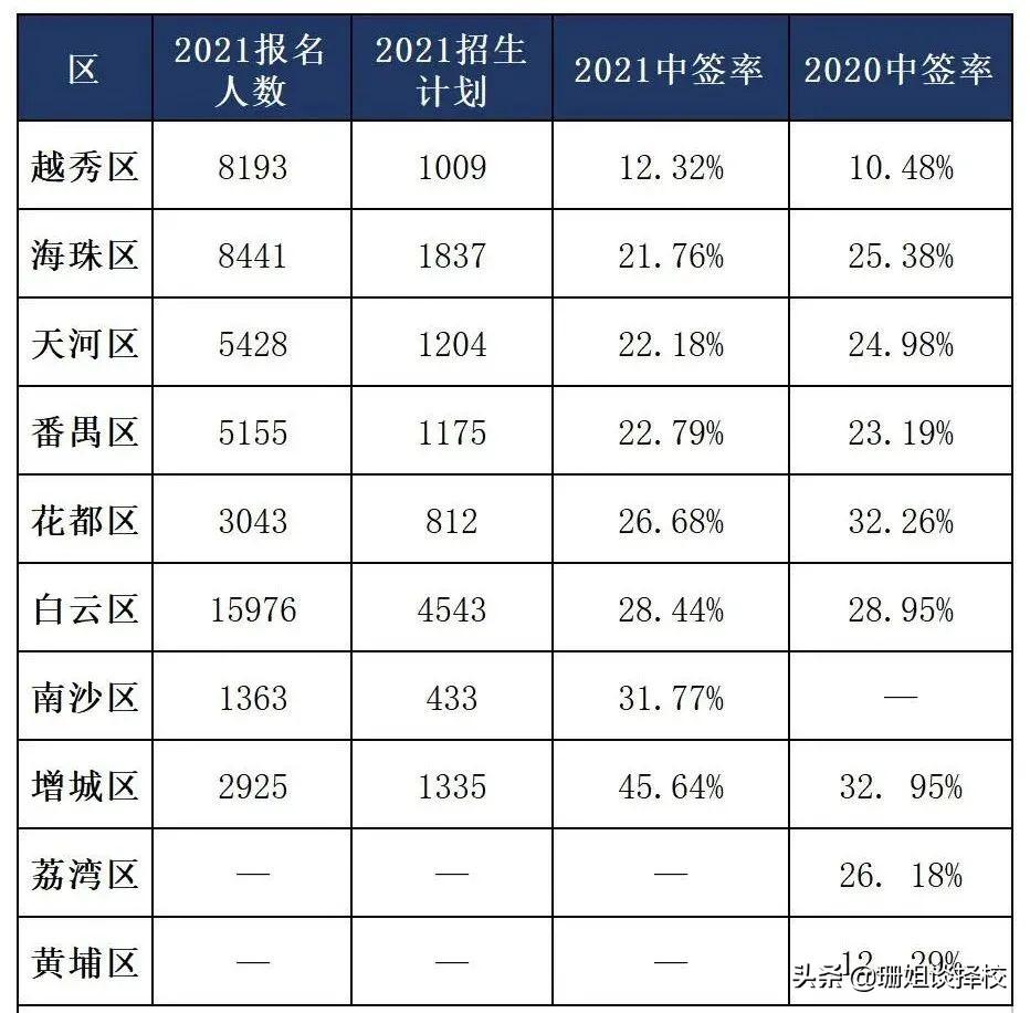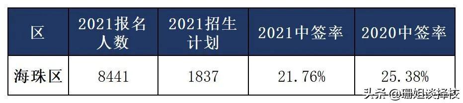 海珠区2021年的计划是1837,而报名的学生则有8441人,中签率21.76%,略低于去年。