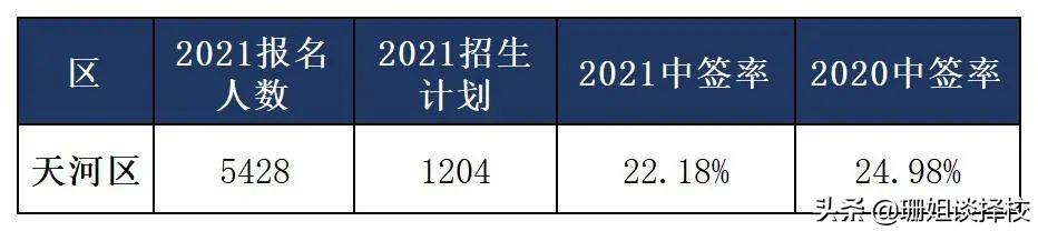 2021报名天河区11所民校的有5428人,最终录取了1204人,中签率22.18%,稍低于去年。