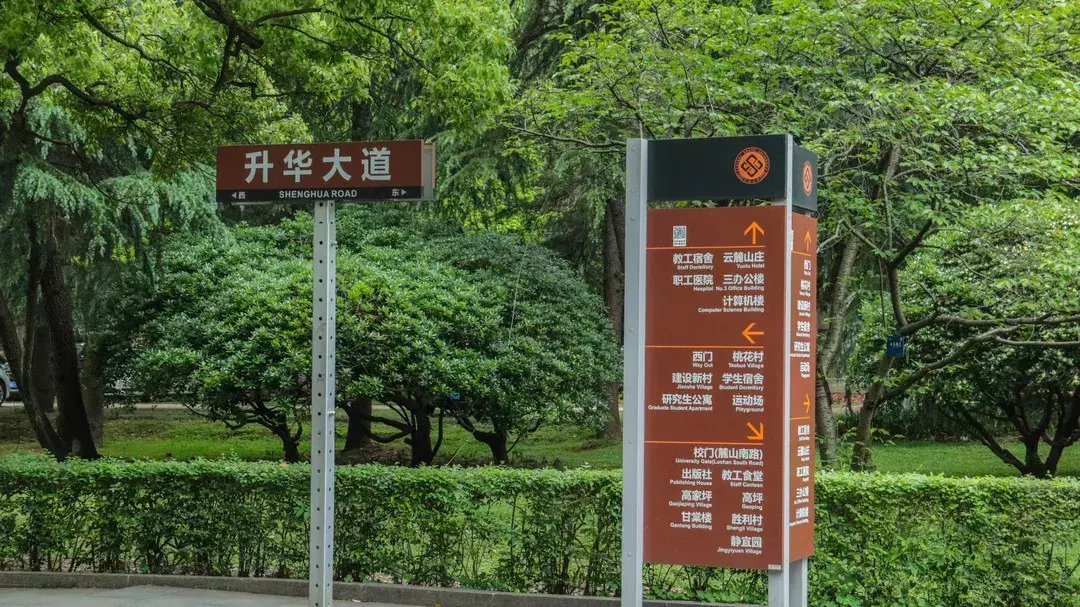 该路位于南校区第一教学楼后面延伸至学生升华公寓,极具文学气息。语出屈原:行吟泽畔,代表湖湘文化和对学生努力学习的期望。
