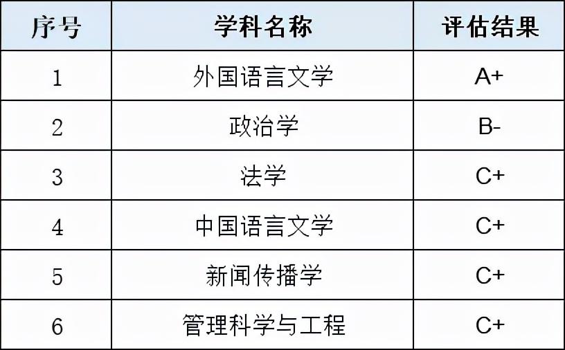 备注:学科评估标准,前2%(或前2名)为A+,2%~5%为A(不含2%,下同),5%~10%为A-,10%~20%为B+,20%~30%为B,30%~40%为B-,40%~50%为C+,50%~60%为C,60%~70%为C-。