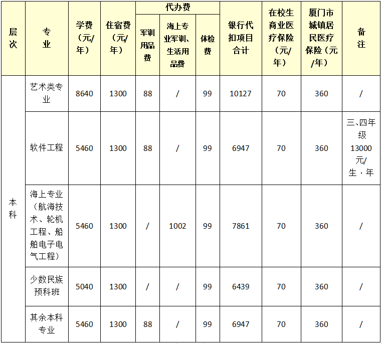 海上专业[航海技术、轮机工程、船舶电子电气工程]实行半军事化管理,生活用品费含半军事化管理所需的军训服、制服、床上用品等。具体费用以最终核缴为准。