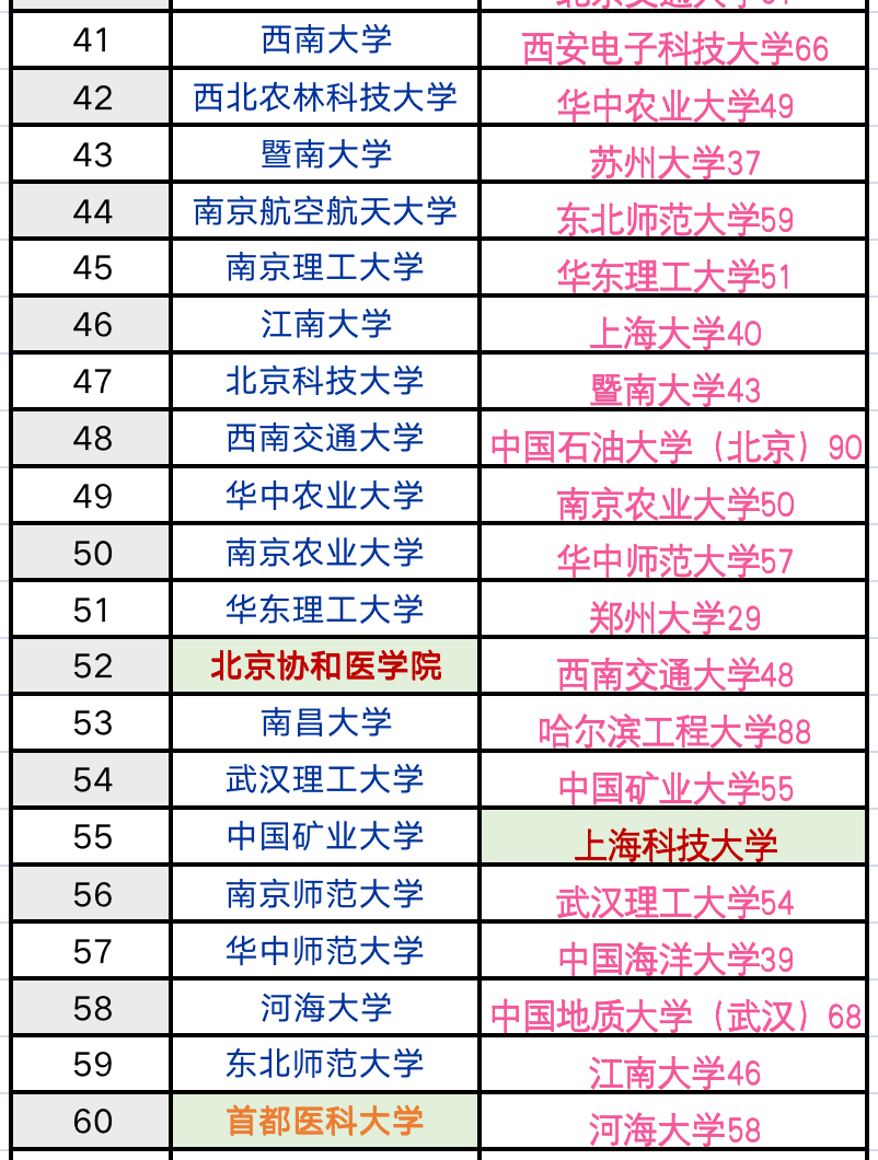“研究生院排行榜”中的3所双一流院校,北京协和医学院、南京医科大学、南京林业大学不在“软科排名”百强名单中。