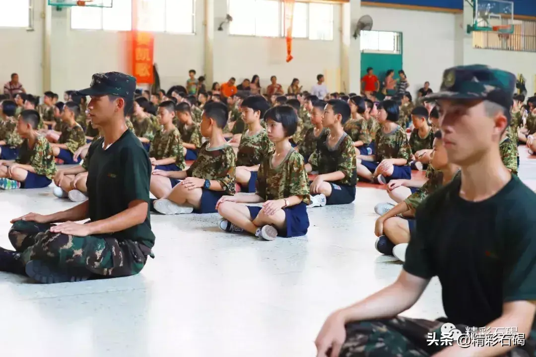 当日下午,“立定、稍息”“一二三四”等口号声响彻袁崇焕中学艺体馆,学生们表演完军体拳、队列等科目后,席地而坐,整齐划一。
