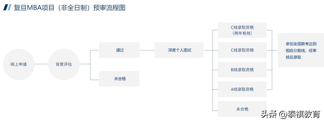 不过,个别院校对提面“最优档”笔试分数的要求也会高于国家线。比如复旦大学管理学院MBA,根据考生的提面成绩划分为A、B、C线录取资格,其C线录取资格就是我们说的提面“最优档”,后期统考笔试需要达到高校自主规定的分数线才行。