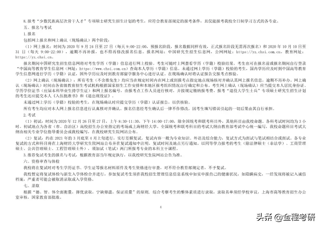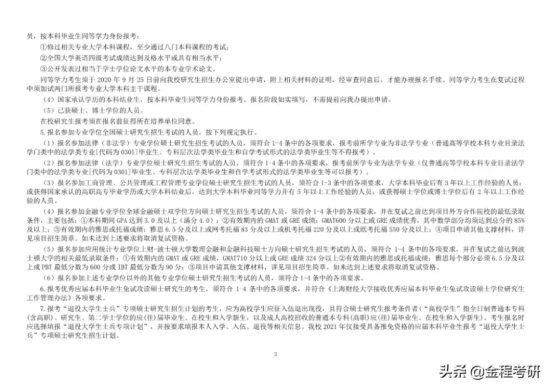 千呼万唤,上海财经大学2021考研招生简章终于公布,今年上海财经大学经济学院金融专硕金融计量方向由原来的数学一改为数学三,另外扩招至100个名额,金融学院A组金融分析师继续扩招,跟着学姐一起来看下简章详细内容吧 !