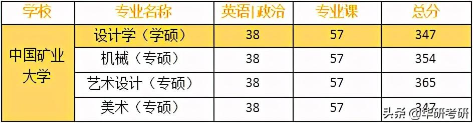矿大是211院校,但受地理位置的限制前几年考的人并不多,但随着近年来考研人数剧增,这几年矿大的难度也不低了。矿大的设计类专业归属于建筑与设计学院,主要有设计学(学硕)和艺术设计(专硕)两个方向可以报考。近年来学硕报录比在2:1左右,专硕在7:1左右,复试线在360左右,考试难度与南林、江大等热门院校相比要小一些。