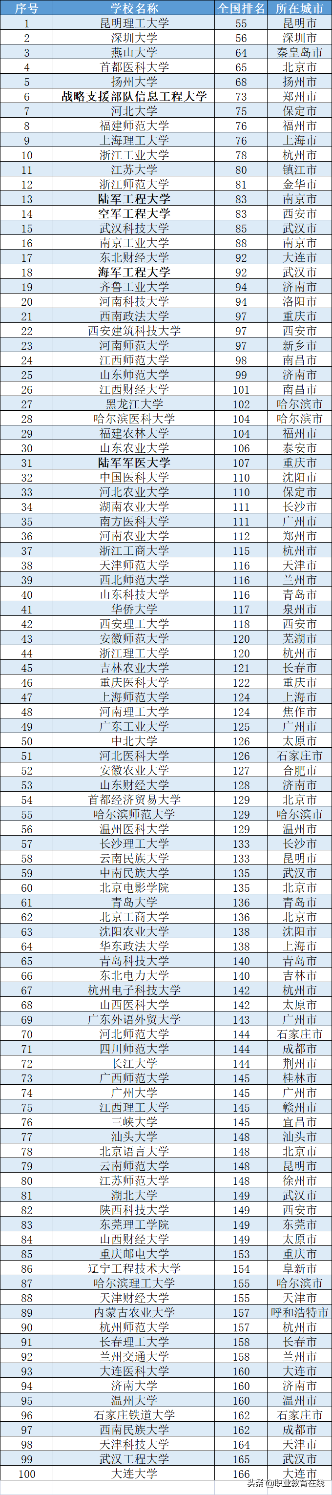 这些大学综合排名都在全国80强之内,但作为省属大学,特别是昆明理工大学、燕山大学、河北大学这样位于财政上并不特别宽裕的省份,能够取得这样的成绩,相当不容易,这的可以说是中国投入产出比最高的大学,也是最具有性价比的大学。