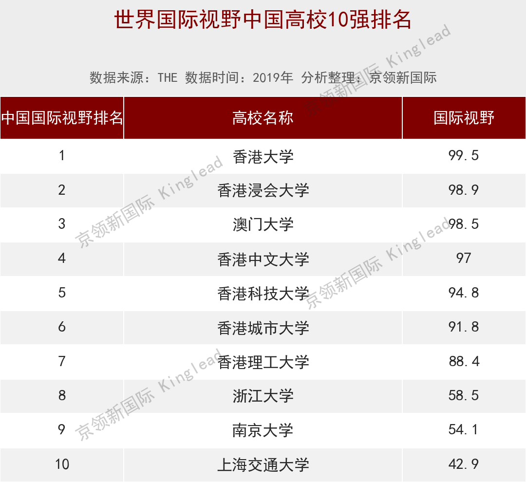 香港浸会大学(第4名),国际视野赶超复旦大学,南京大学,北京大学等32所大学;