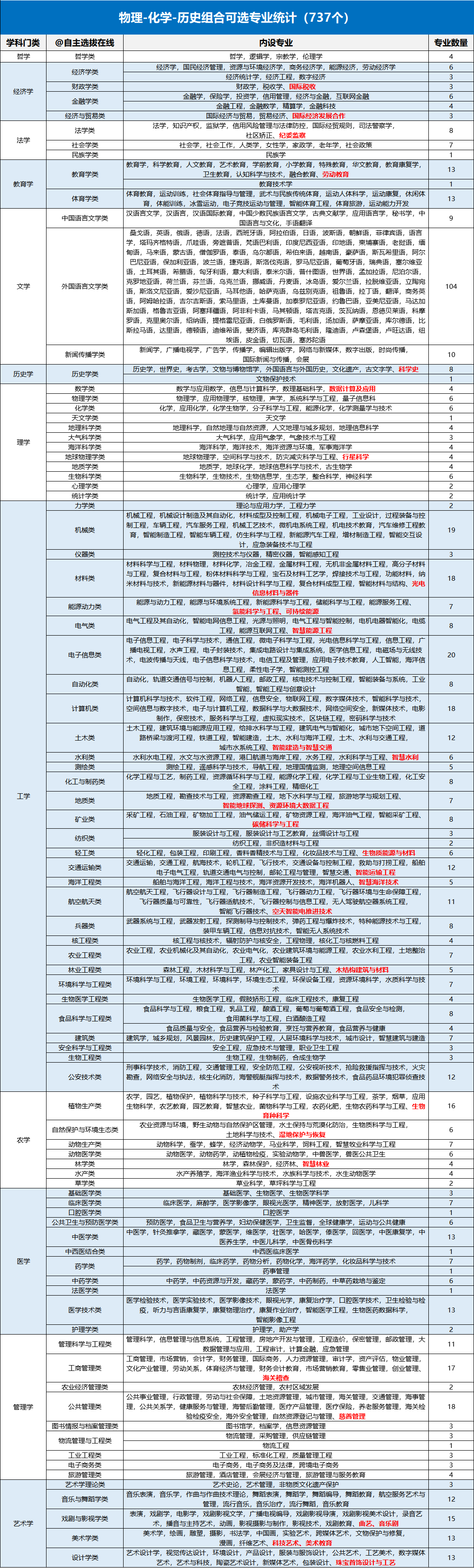 物理-历史-地理组合专业覆盖率相较而言偏低,优势集中体现在对物理做出必选要求的专业,如中医类专业、经济学、金融学等。