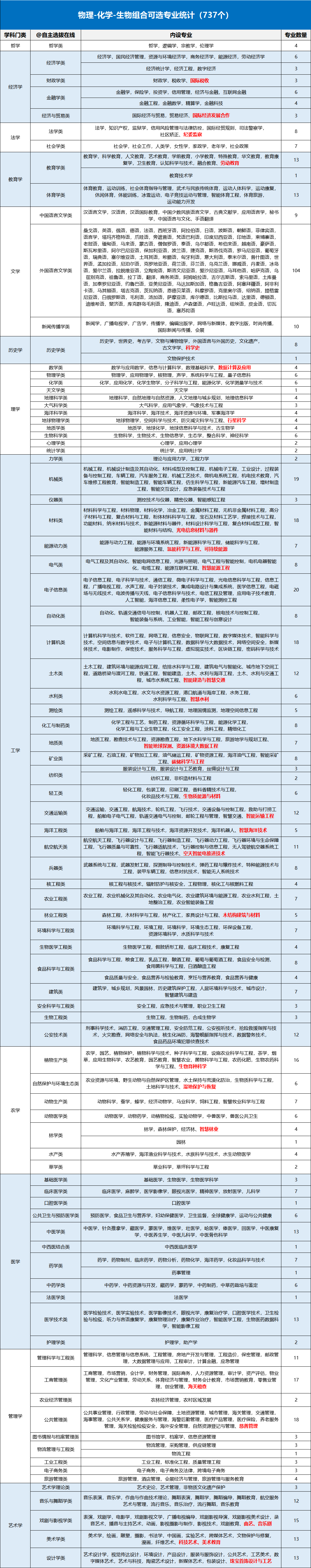 物理-化学-生物组合学科关联度大,理科优势显著,在新高考模式下依然保持热度,但竞争较大。