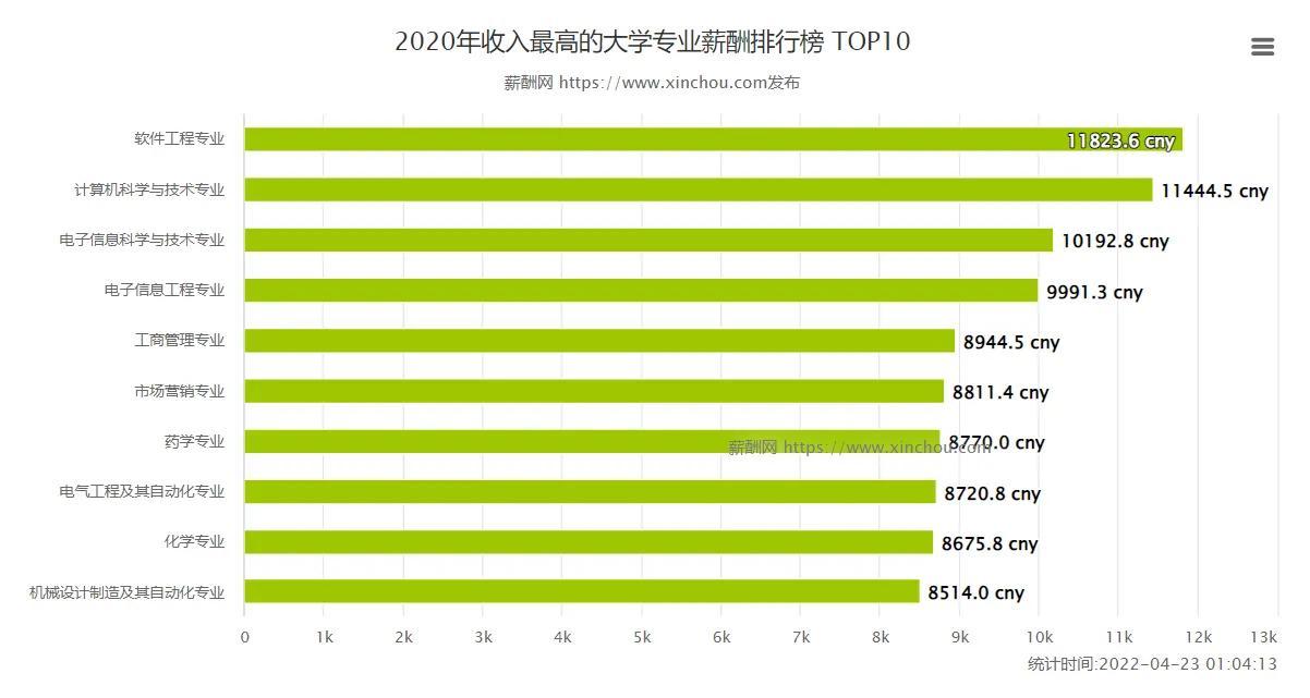 下面是我罗列出的一些高薪专业(摘自:中国薪酬网):