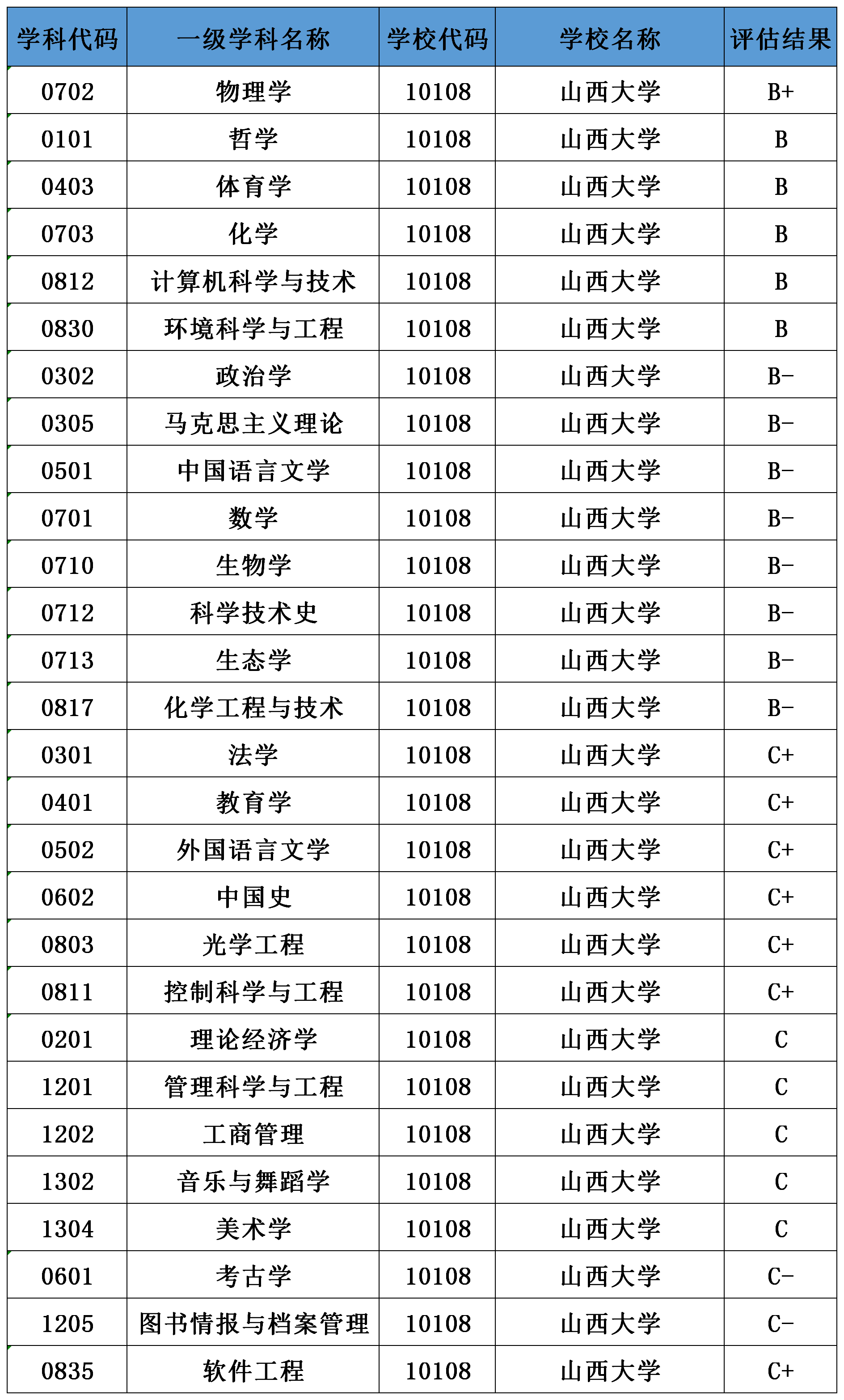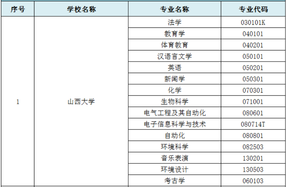 山西省级优势专业:物理学、计算机科学与技术、历史学