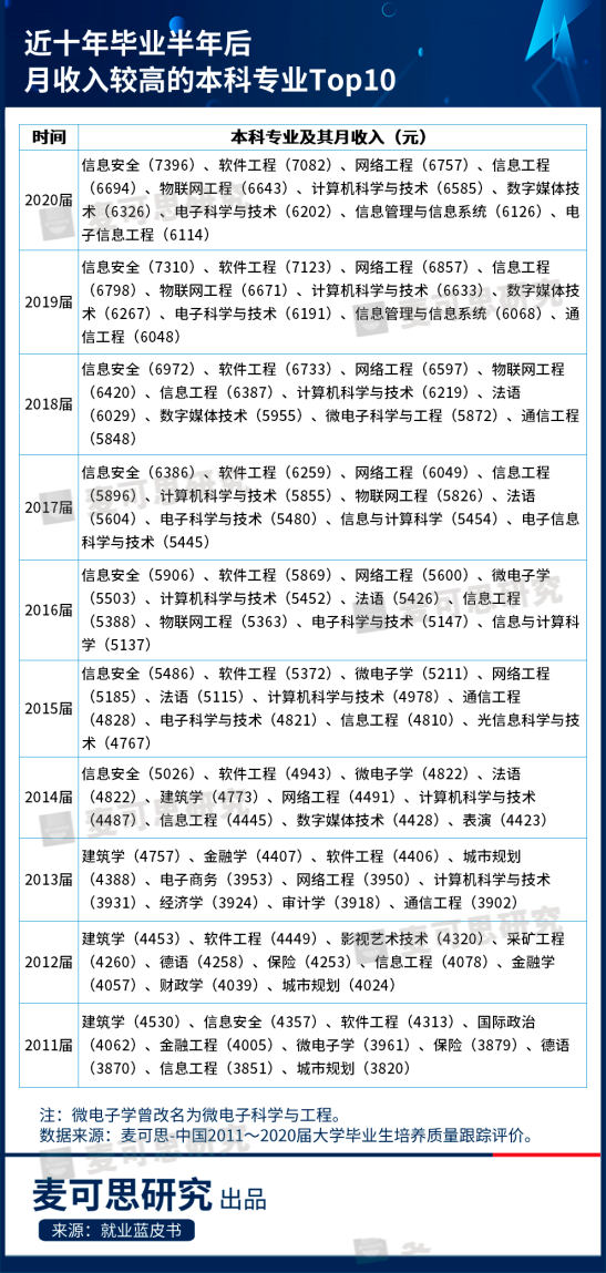 2021年,麦可思研究对近十年本科高薪专业进行了整理分析,软件工程是唯一一个连续十年入围高薪Top10的专业,且排名均在三甲,表现抢眼。此外,根据2017—2020年《中国本科生就业报告》(就业蓝皮书),以软件工程等为首的计算机类专业,除了薪资较高外,失业量较小,就业率和就业满意度也都较高,为需求增长型专业。