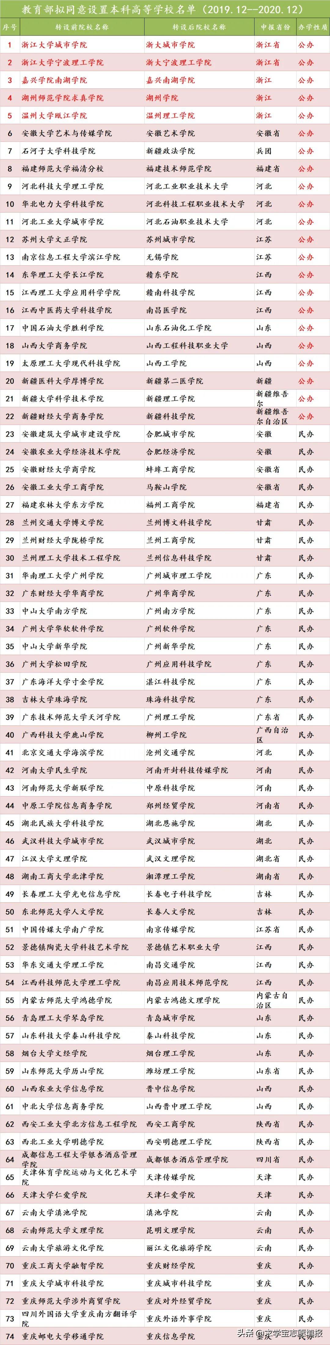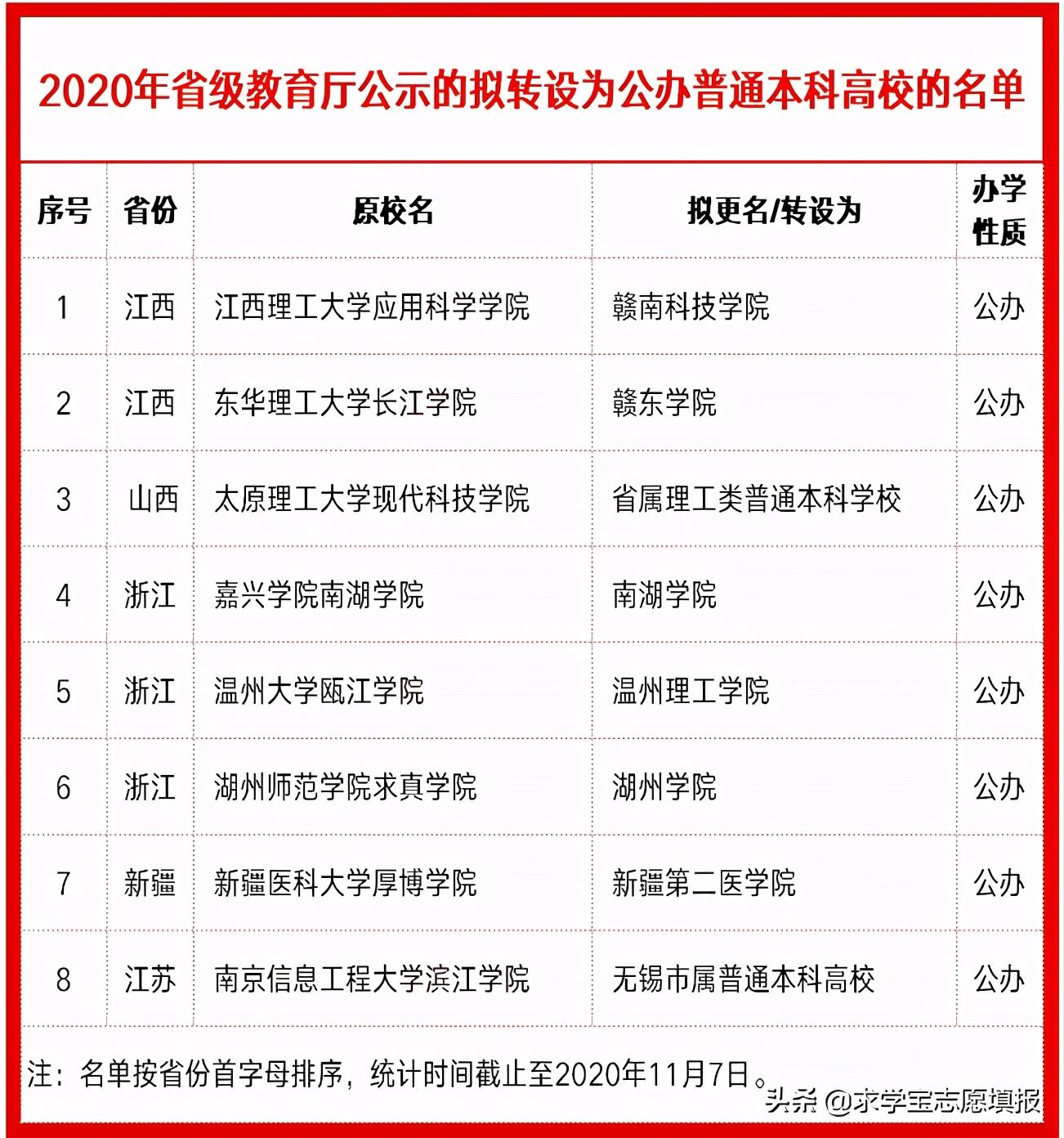 2020年获省教育厅公示的拟转设高校名单中,转为民办高校是大多数独立院校的选择,比如: