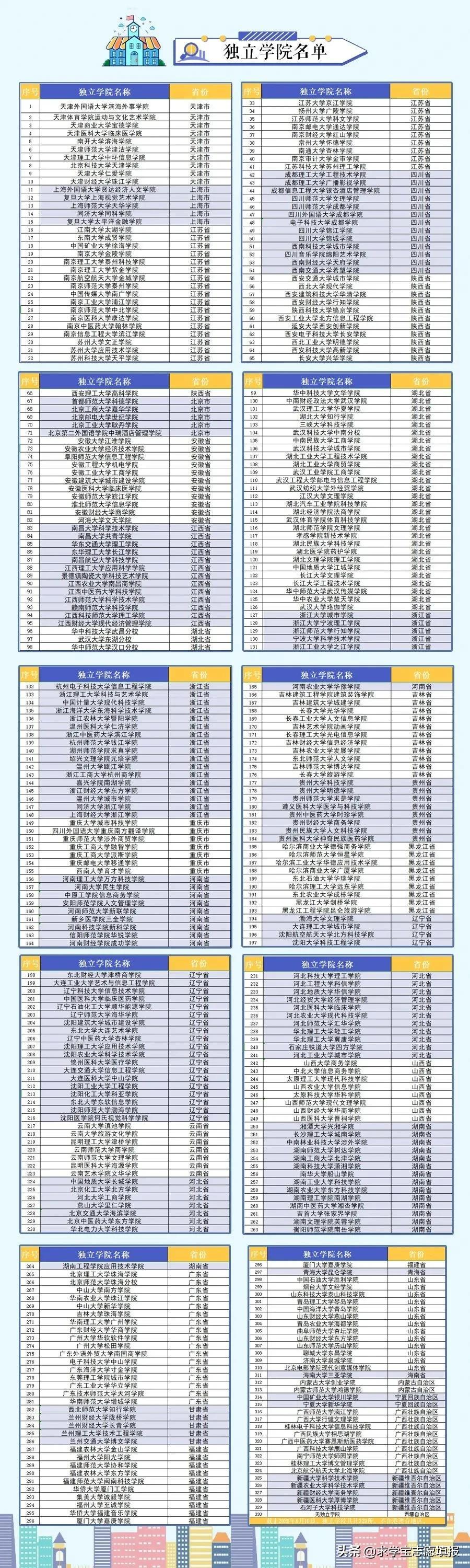 历史上总共出现过330所独立学院(其中西藏自治区未办有独立学院),这在全部普通高校数量中占比超过了百分之十。