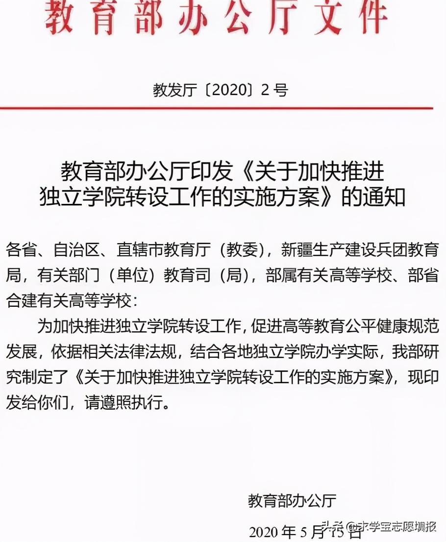 2、部分独立学院转为公办普通本科高校